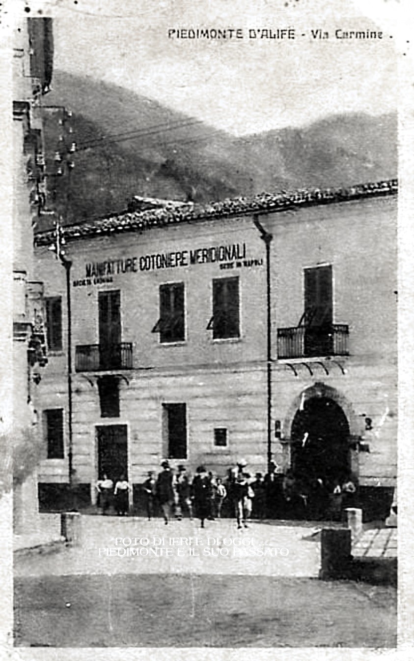 Vista dell’ingresso del Cotonificio dal lato del Convento del Carmine, su Via Carmine dal Ponte di Santa Lucia, inizio del 1900.